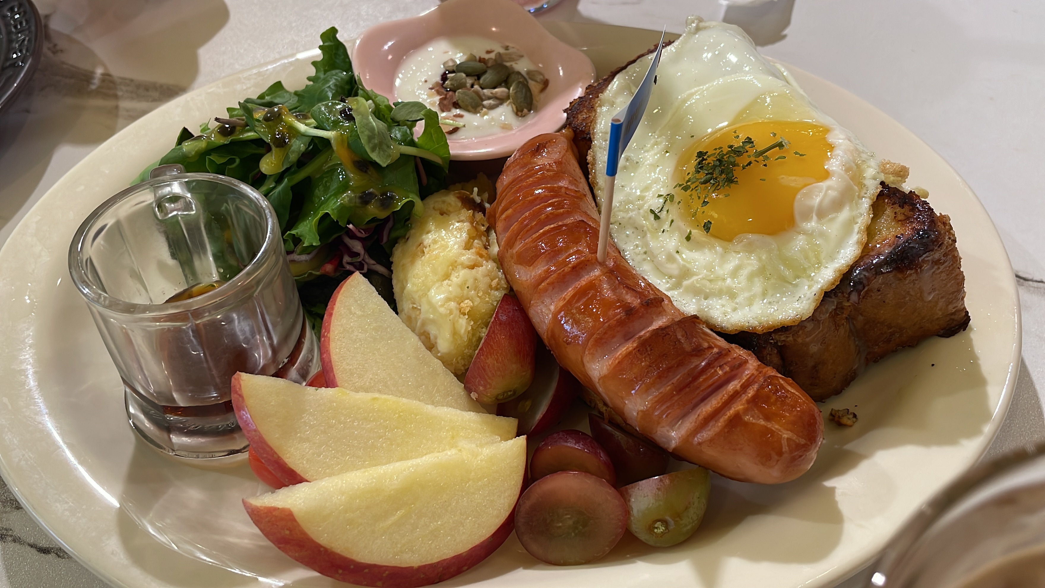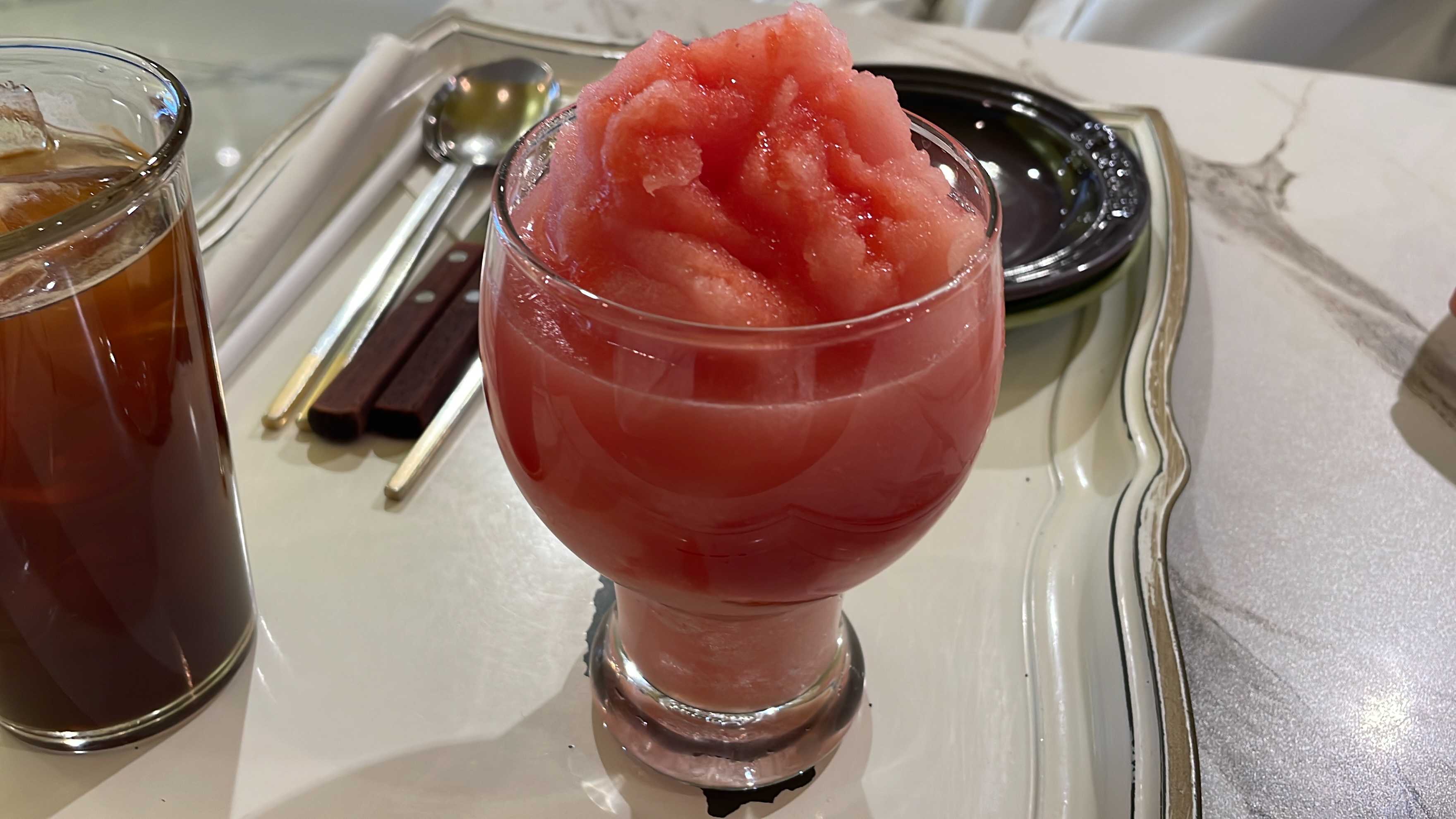 나는 라구, 프렌치 토스트, 자몽 스무디를 주문했다.
