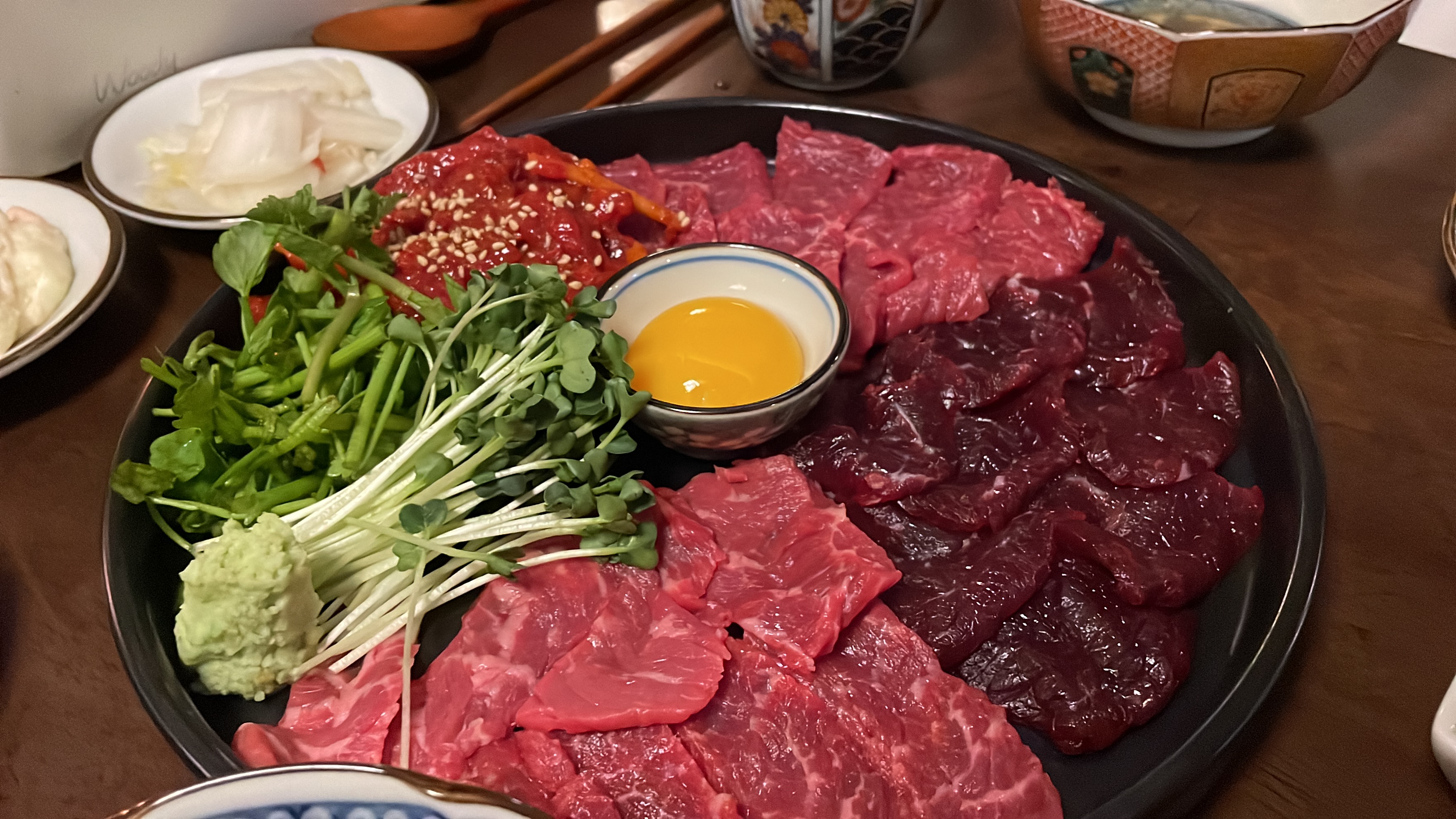딱딱한 사시미 4종과 스키야키를 주문했습니다.