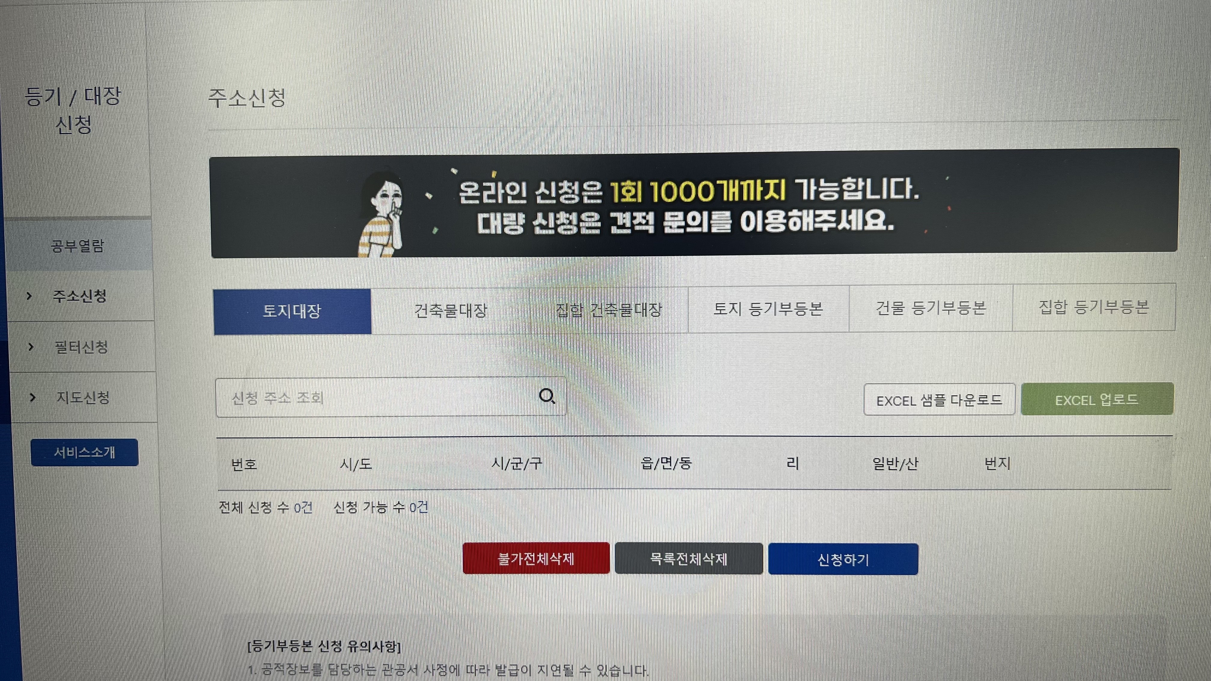 토지등기부, 건축도서, 토지공증사본 및 건설집합지적을 공동인쇄할 수 있는 서비스를 제공합니다.
