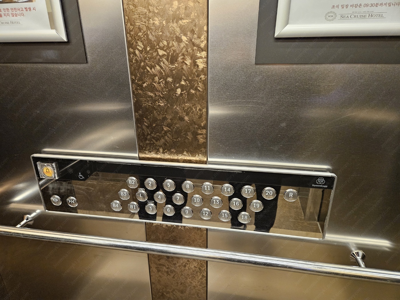 씨크루즈 호텔은 옥상 R층에 루프탑 테라스가 있으며, 그 아래 4~20층은 객실로 구성되어 있습니다.