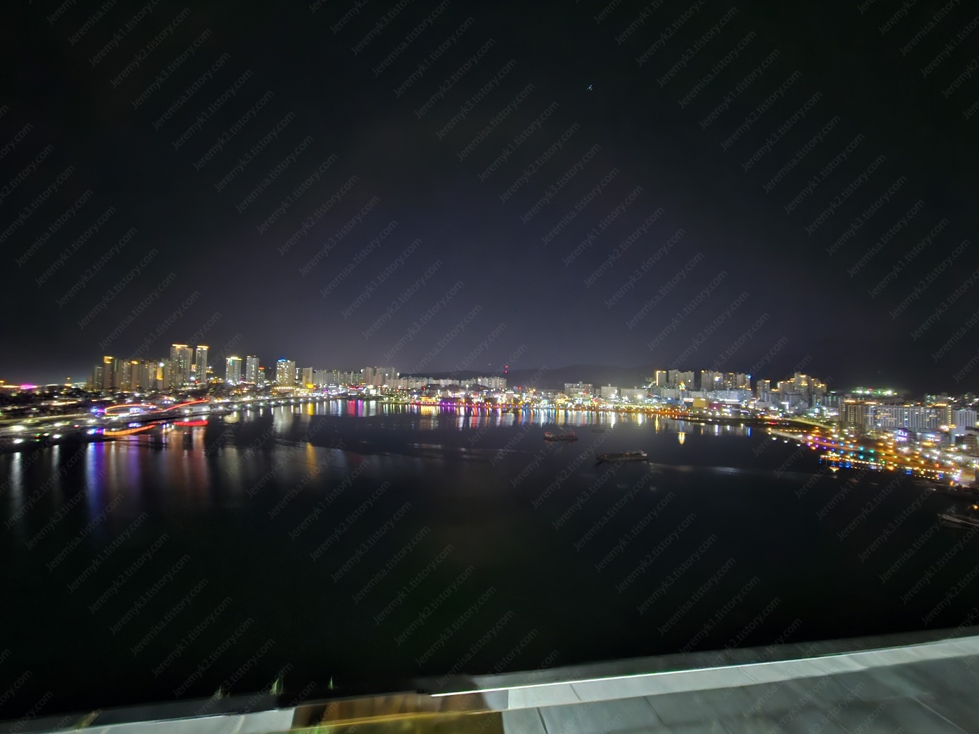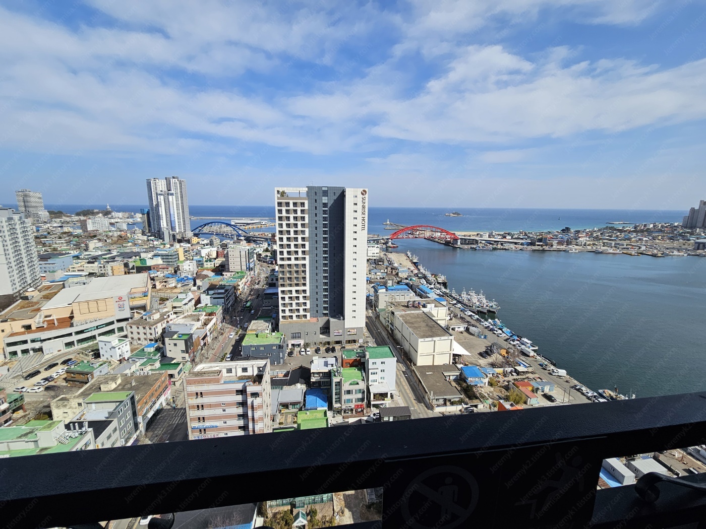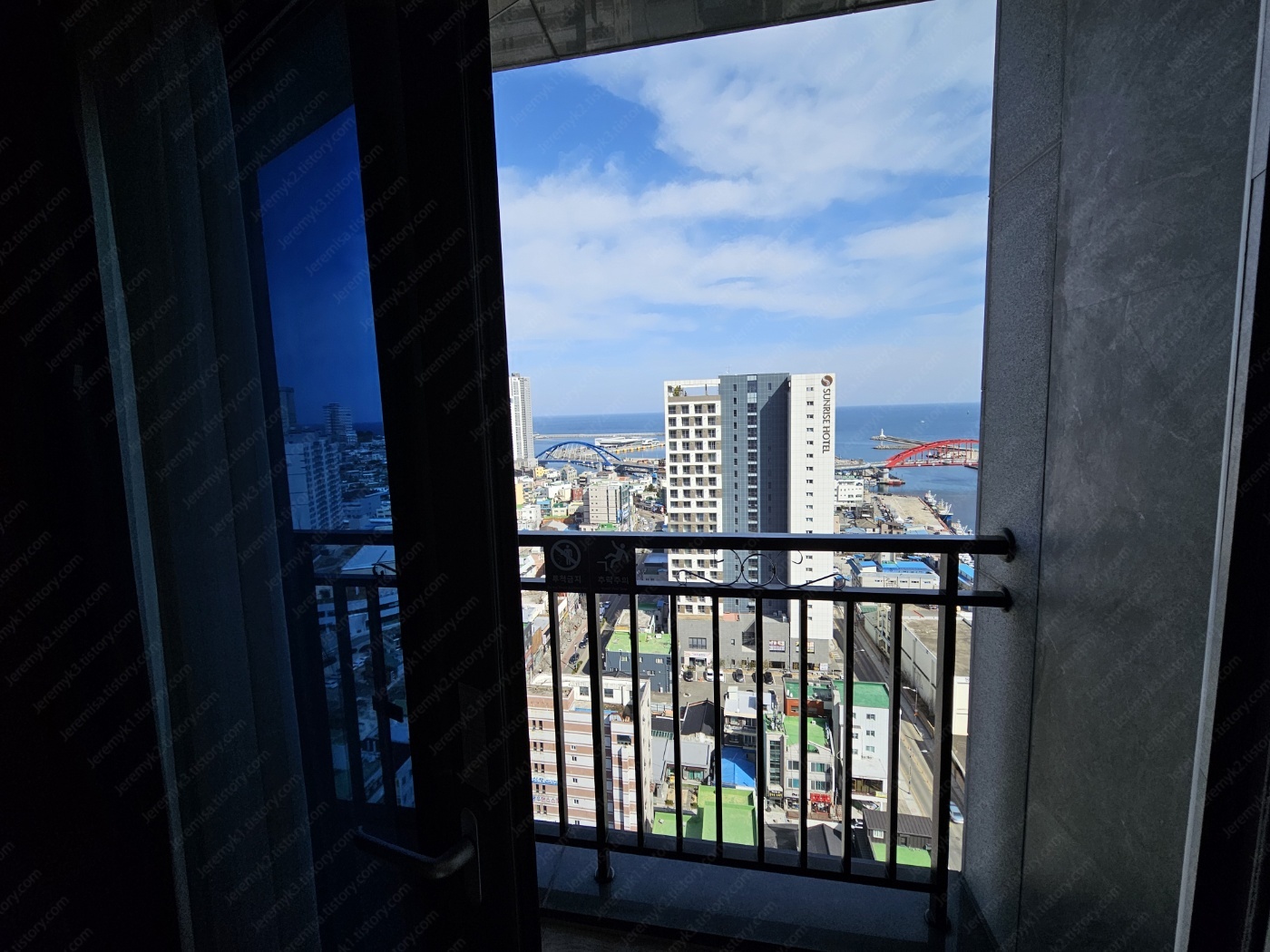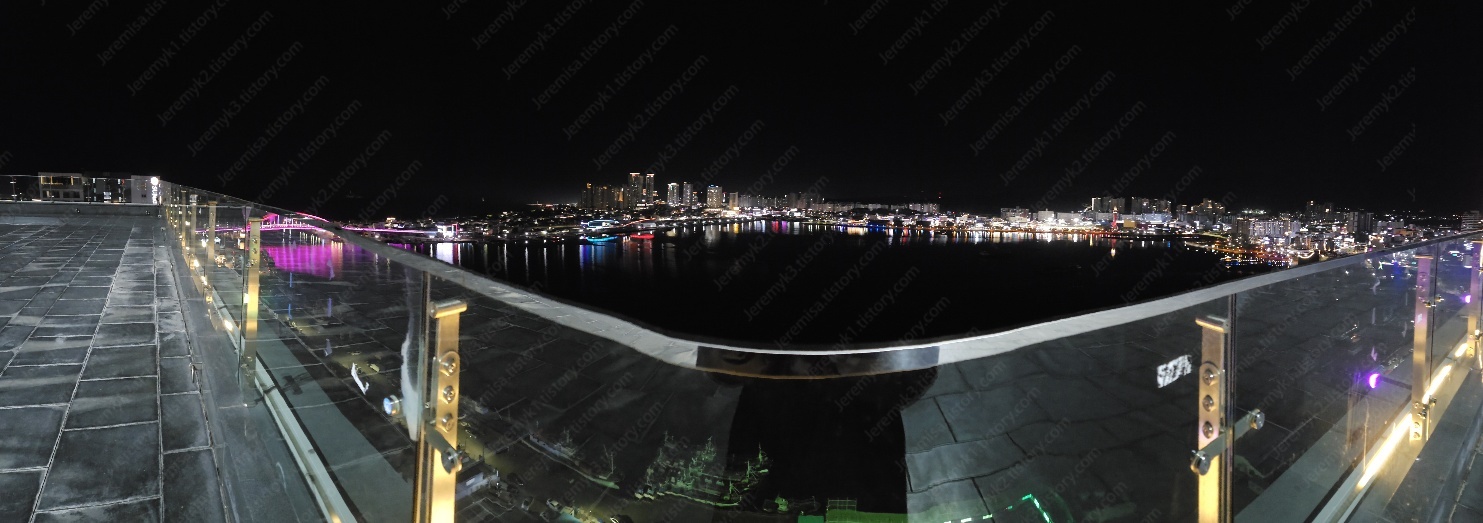 전면은 도심이고 오른쪽 대각선은 바다입니다.