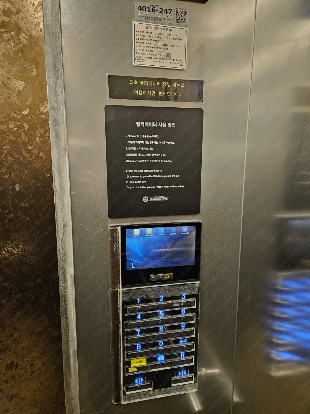 엘리베이터 문 오른쪽에 있는 버튼은 9층까지만 버튼이 있습니다.
