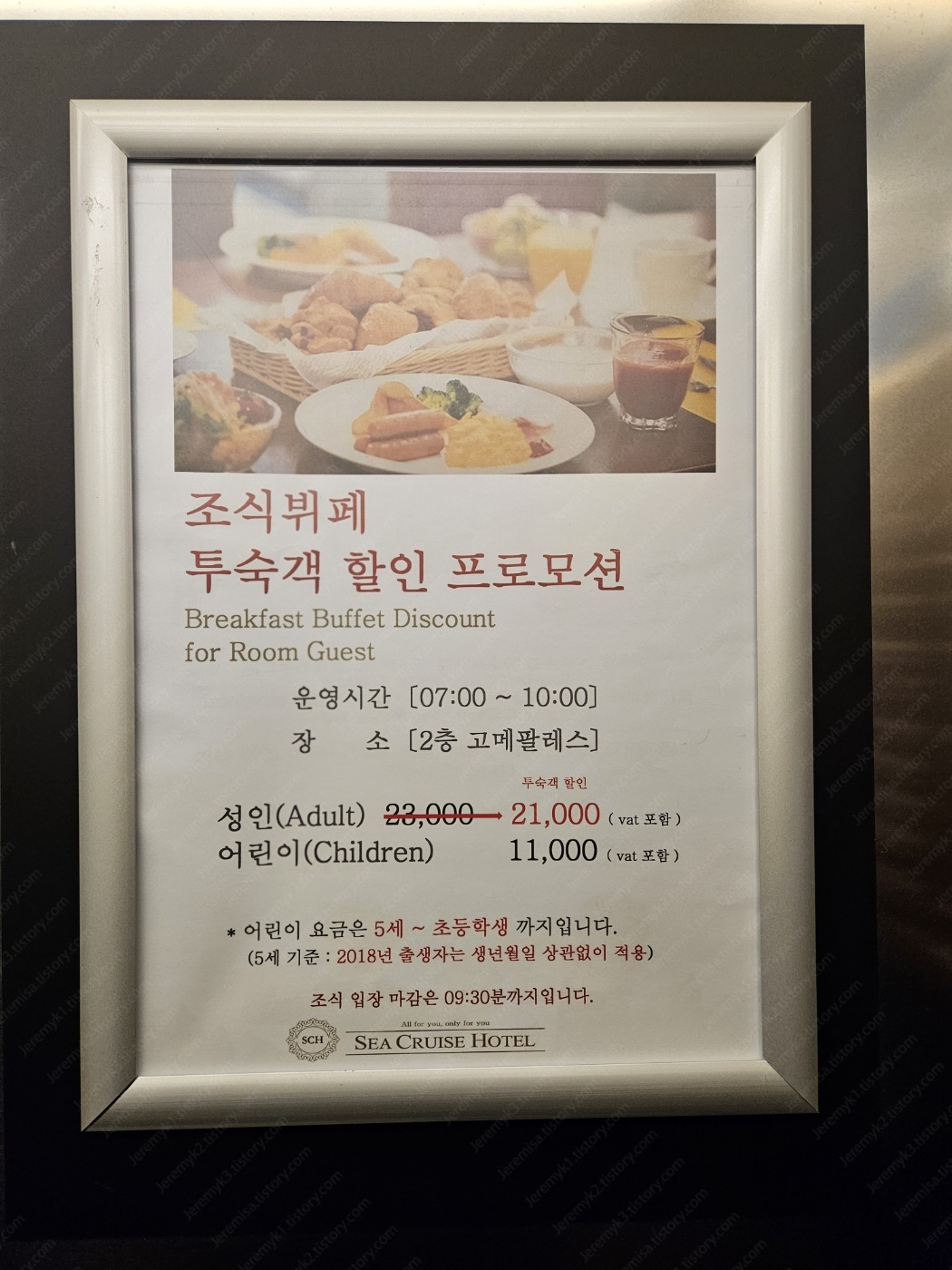 조식 시간은 07:00~10:00이며 마지막 입장은 09:30이니 늦지 마세요.