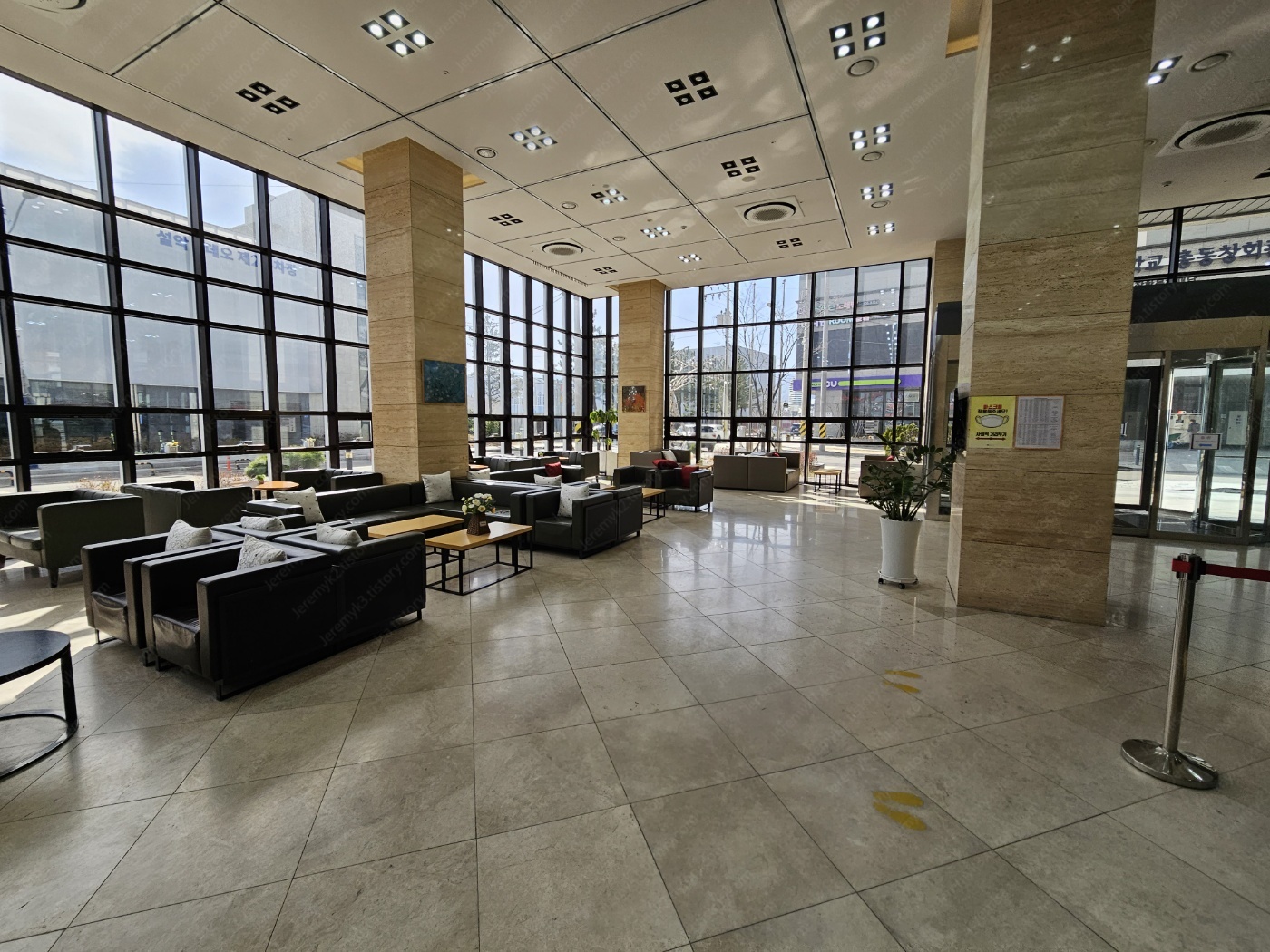 로비가 꽤 웅장합니다. 천장이 높아서 개방감이 아주 좋습니다.