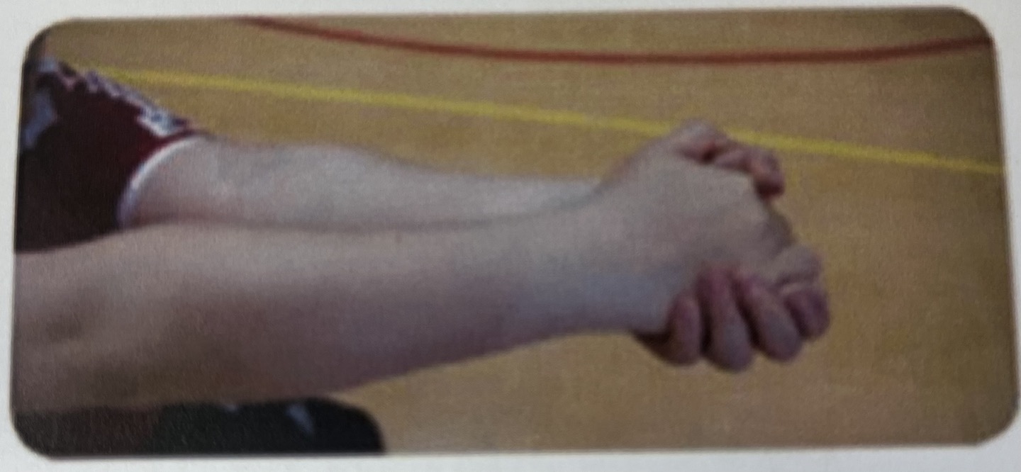 - 손목이 약한 선수는 손목과 팔꿈치 사이에 접촉점이 오도록 공을 친다.