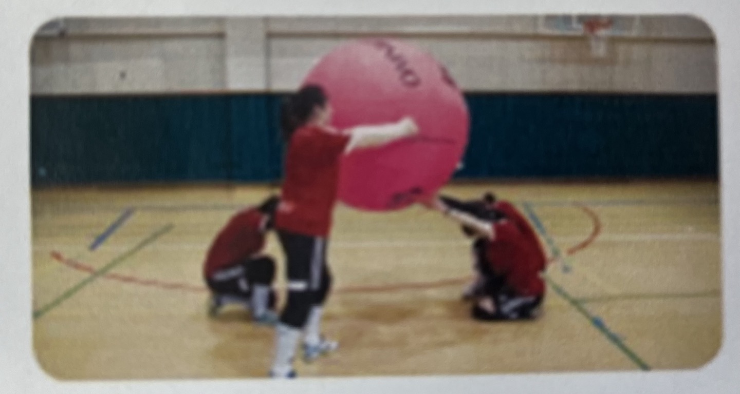 2) 킨볼을 낮은 위치에 앉히기(공이 신체 수준에 있을 때 다음 동작 수행)