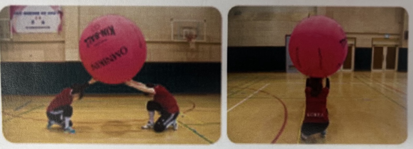 3) 킨볼을 발로 가져가기(공이 무릎 높이일 때 다음 동작 수행)