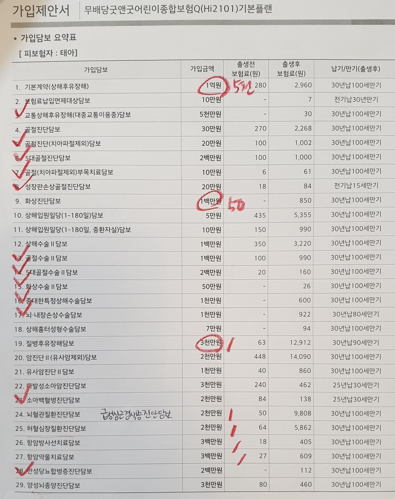 태아보험에 가입할 때 우선적으로 고려해야 할 사항이 몇 가지 있는데 첫째는 실비(어린이 의료비)+종합보험입니다. 실손에 대한 의료비는 종합보험에 포함되어 있지만 단일실비보다는 종합보험에 실비로 포함시키는 것이 효율적입니다. (1인실비 : 자기부담 입원비 차감 후 환급되는 금액 / 종합보험 : 암진단, 뇌혈관질환진단, 허혈성심장병, 각종 수술 및 입원비 일률적용) 30세, 하지만 지금은 100세 추천 . 아이가 어른이 되면 꾸미는 번거로움 없이 처음부터 바로 하는 것이 좋습니다. 마지막으로 지불 기간을 설정하십시오. 대부분 20세에서 90세, 혹은 30세에서 100세에 숙성시킨다. 매월 지급되는 보험금 금액에 큰 차이가 없다면 최대한 빨리 납부를 완료하고 보험금 총액을 줄이는 것이 더 유리할 것입니다.오늘은 태아보험에 대해 이렇게 알아보겠습니다. 저도 처음에는 헷갈렸는데 알고 나니 그렇게 어렵지는 않았습니다. 차근차근 알아보시고 조건이 좋으면 가입하시면 됩니다. 마지막으로 아래에 링크를 남길테니 참고하시고 협의 부탁드립니다.