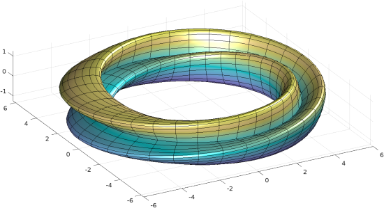 중학교 때 처음 접한 순전히 학문적인 이야기 중에서 초끈 이론으로 10차원 우주를 설명하기 위해 칼라비-요 다양체와 뫼비우스의 끈을 소개했던 기억이 난다. CY 모델은 요즘 보기 드물지만 의외로 뫼비우스의 띠는 지금도 여기저기서 볼 수 있다. 예를 들어, 1차원 무한 전위 우물에 갇힌 입자는 1차원 뫼비우스 띠 또는 2차원 묶음 모양의 뫼비우스 오비폴드(클라인 병에 갇힌 입자)로 확장될 수 있습니다.